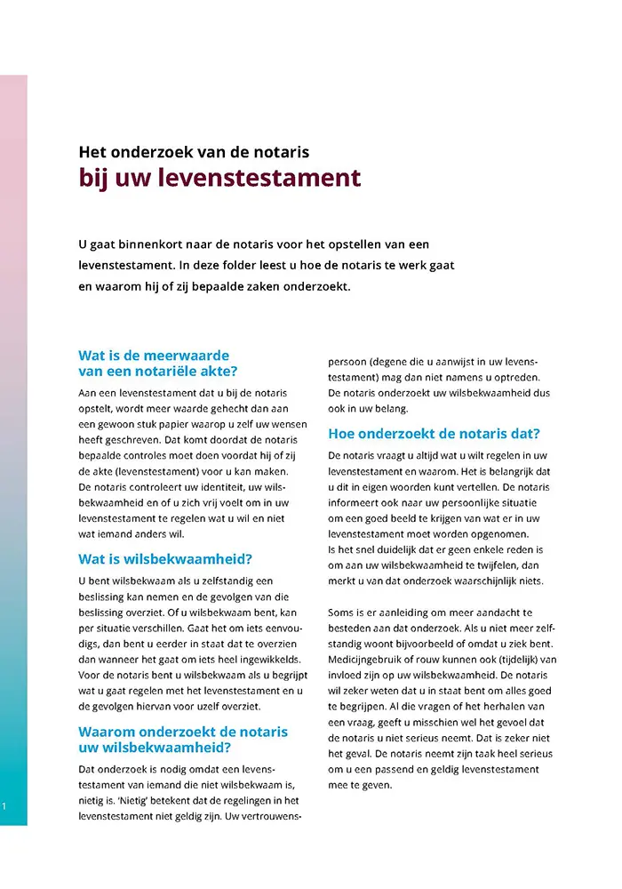 Brochure “Het onderzoek van de notaris bij uw levenstestament”